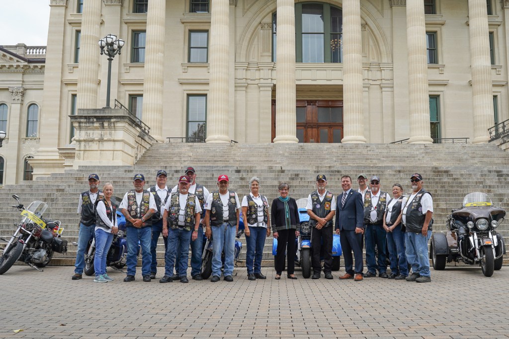 Gov. Kelly met with members of the Patriot Guard Riders outside the Kansas State Capitol before a ceremonial bill signing event June 24, 2021.