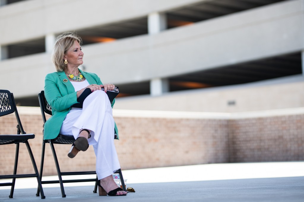 Gov. Kelly announced eight new Eastern Kansas highway projects at Evergy Plaza in Topeka July 8, 2021. State Department of Transportation Secretary Julie Lorenz, Topeka City Manager Brent Trout and Republican State Rep. Richard Proehl presented the plan with Kelly.